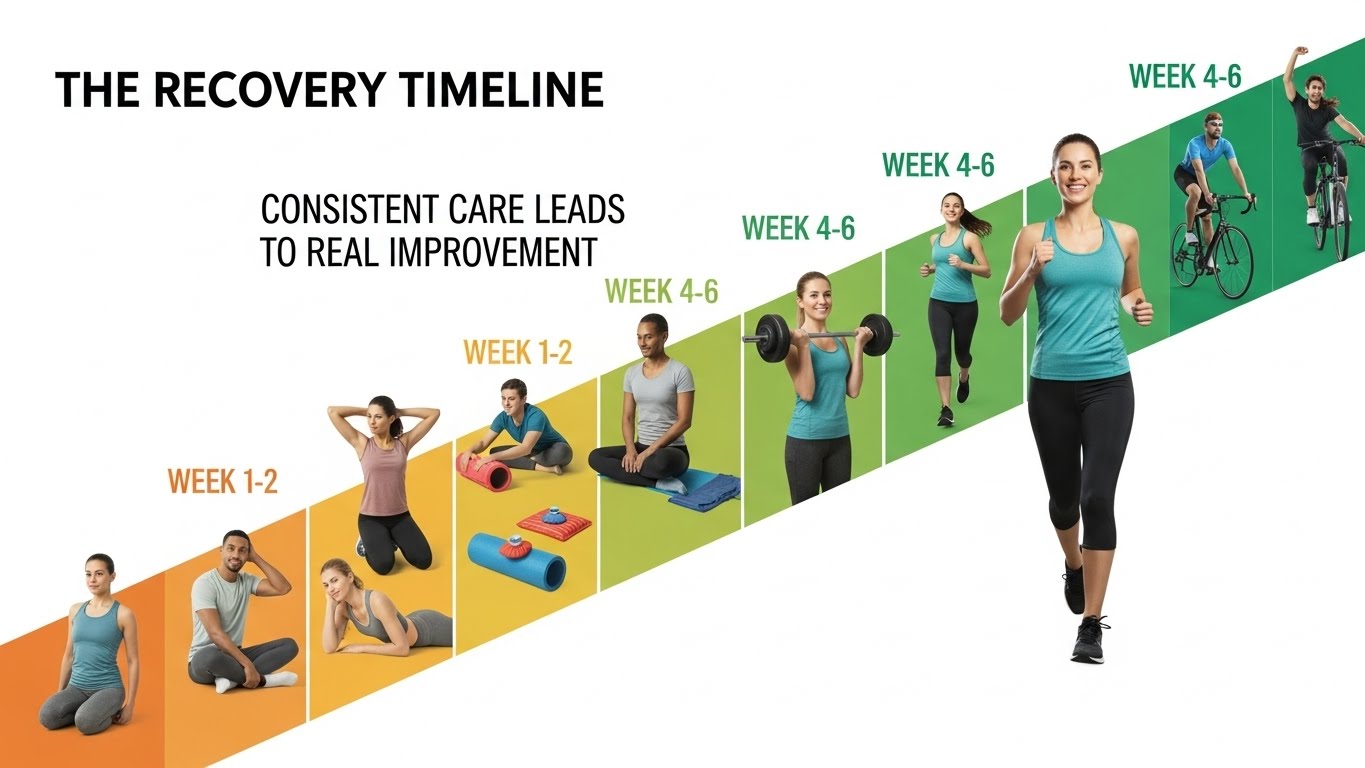 근육통은 보통 1~2주면 개선돼요. 하지만 만성적인 경우는 더 오래 걸릴 수 있어요. 자세 교정, 스트레칭, 운동을 꾸준히 하면 4~6주 후부터 눈에 띄는 개선을 느낄 수 있습니다.